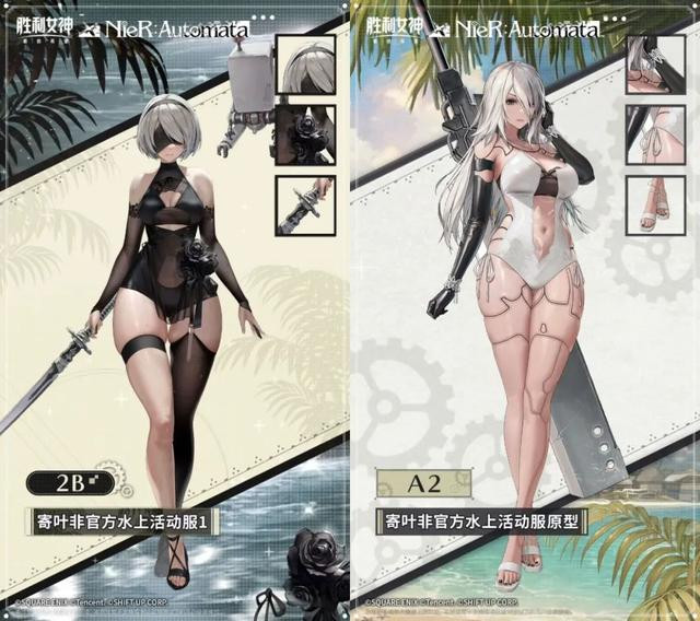 炎炎夏日,这次《胜利女神》和尼尔联动出品了泳装皮肤。《尼尔》玩家们能在这个联动版本里见到「2B」和「A2」的首创泳装,可以说是圆梦了——谁不想看看自己喜欢的角色穿泳装呢!像这样喜闻乐见的内容,对IP双方玩家都有巨大的吸引力。