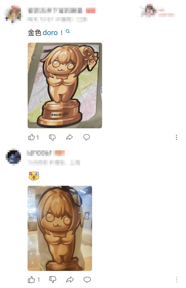 散场的时候,在退场的人潮里,游戏新知仍然时不时就能看到背着《胜利女神》赠送的巨大金doro袋子的玩家。还有玩家干脆将打卡获取的doro小彩旗插在背包上,让它高高飘扬。看着这样的热度,很难想象《胜利女神》的国服版本才上线不到两个月。没想到它已经是如此热门的知名二次元IP了。