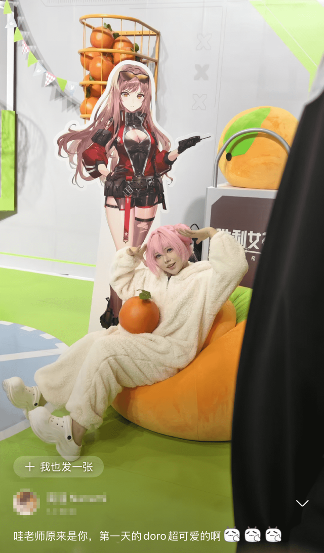 像这样与游戏内容有关的互动小游戏,如今在线下展会并不少见。但有了大量coser的加成之后,氛围就会立刻变得不一样了,仿佛进入了游戏内的世界、有了喜爱的角色的陪伴。通过将角色的魅力跨次元地展示出来,展会也能成为回馈玩家热情的有效方式。